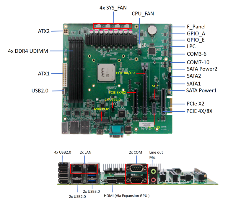 ·2x USB3.0, 9x USB2.0, 1x LPC, 16bit GPIO
